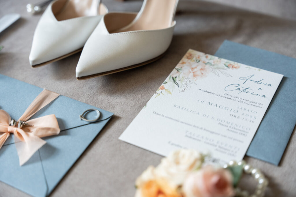 In una partecipazione è importante guidare la lettura: il nome degli sposi dovrebbe essere il primo elemento che cattura l’attenzione, seguito dalla data e dalle informazioni principali.